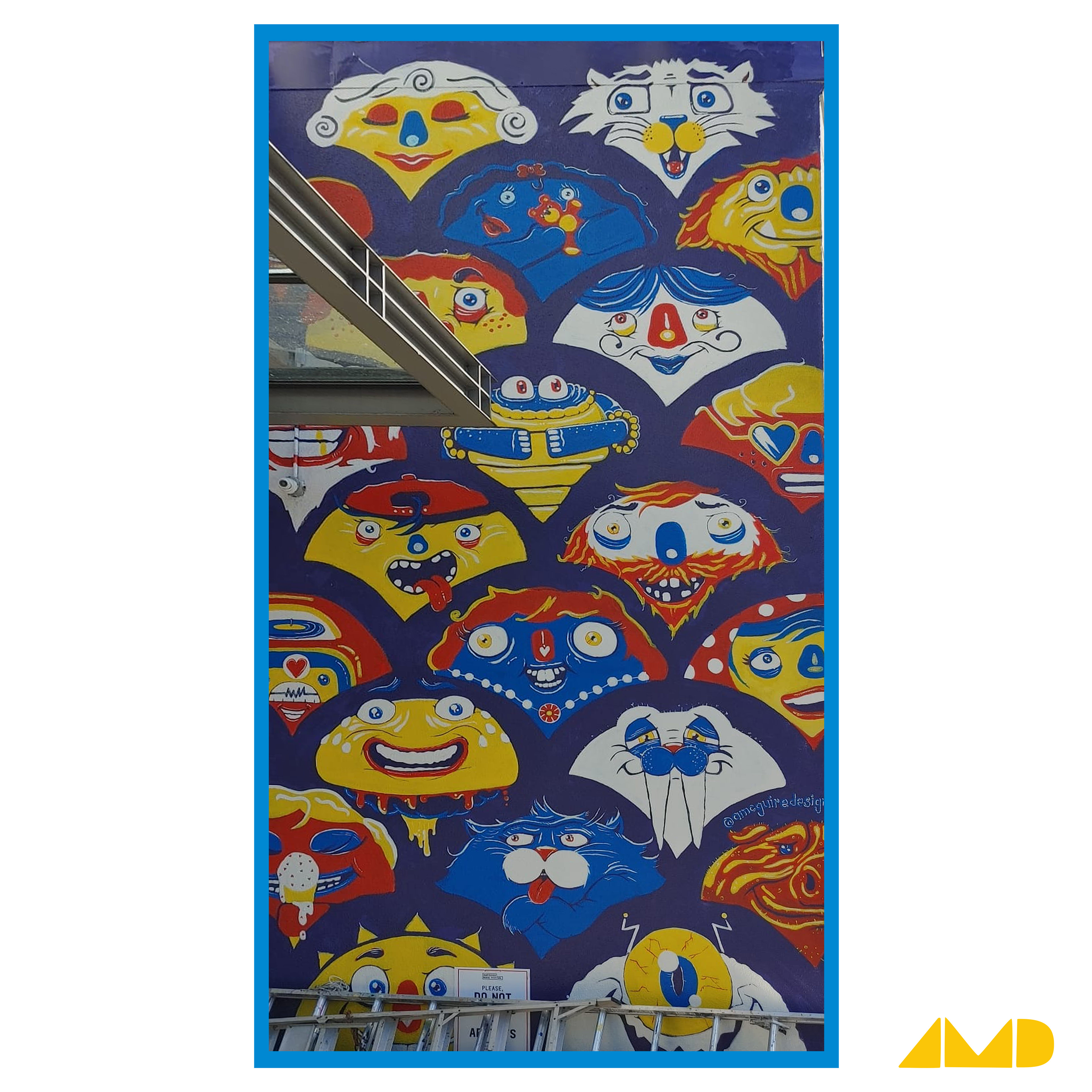 Illustrations and murals located in the Cambie Village neighbourhood in Vancouver, BC through the Vancouver Mural Festival. The creative direction from the organizers was to create an engaging and entertaining atmosphere for children and families of the area. The artwork was designed with the idea of representing the neighbouring businesses and community that include: child care, veterinary, schools, ice cream shop as well as various restaurants and shops. The final concept was to have a diverse and playful collection of all types of interesting characters using a repetitive pattern as the base layout with an inviting and joyful aesthetic.